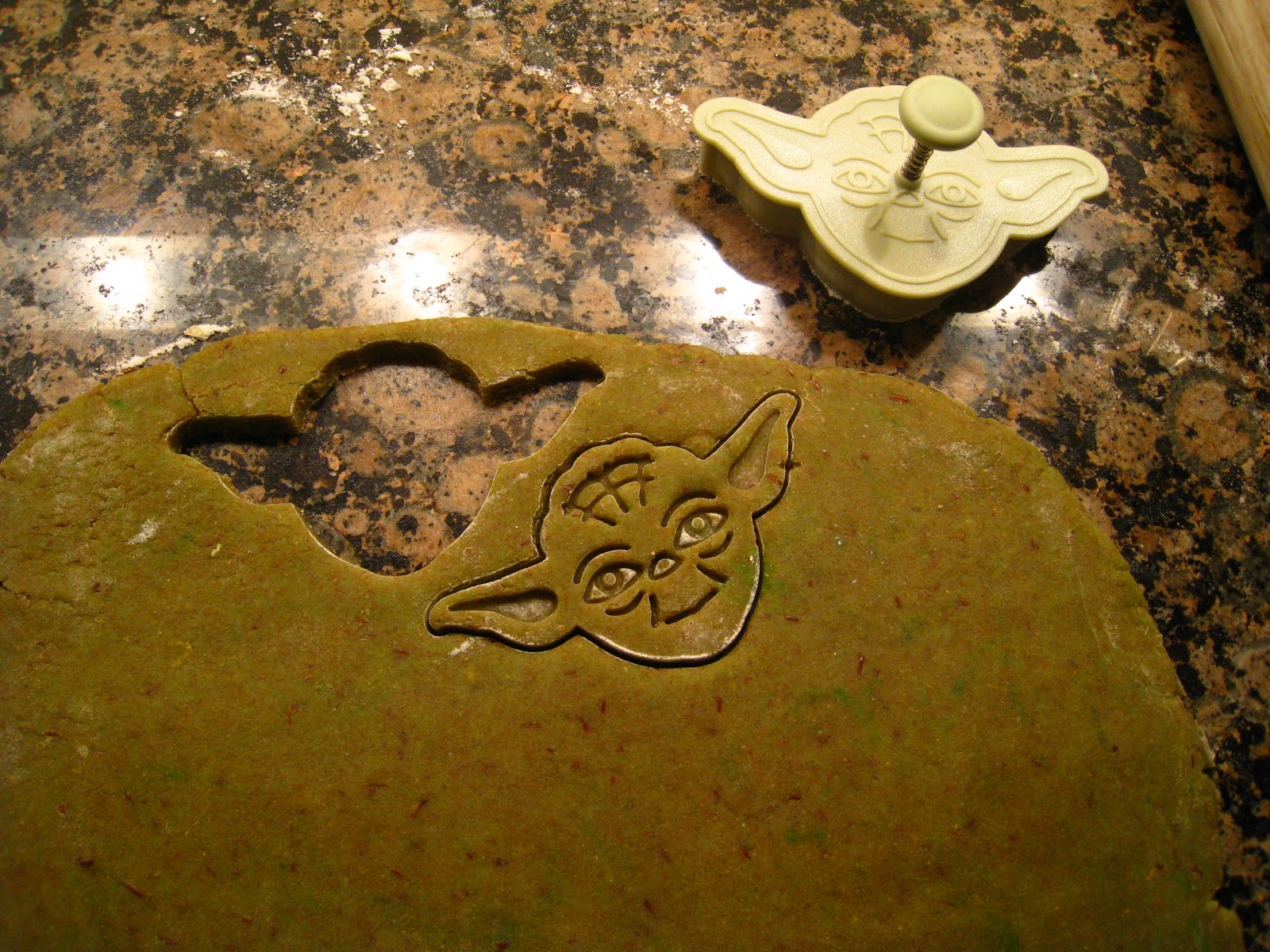 The set comes with 4 designs: Darth Vader, a Storm Trooper, Boba Fett and my favourite, Yoda!  The cutters themselves are sharp and efficient and come with a spring-loaded stamp so that you create an imprint of the character's face without having to decorate the cookies once baked.  This is particularly effective if you use food colourings to dye the dough first!  The set comes with a recipe for sugar cookies which I found worked well and tasted good, however, I have tweaked it and created my own recipe below!  Things to remember that help the cookie cutters work well: chill the dough before use and dip the cutter in flour (shaking off excess) between cuts!