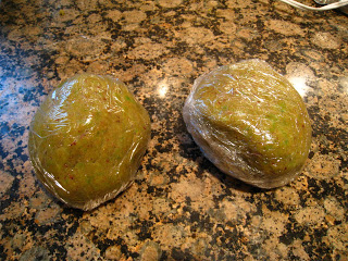 Bring the dough together into a ball.  At this point, I separate it into two balls, one to be frozen for use at a later date... the recipe above yields 48 Yoda sized cookies and there are only so many Yoda cookies you can eat in one sitting, believe it or not!  Wrap in plastic wrap/clingfilm and chill for at least an hour or two, but preferably overnight!