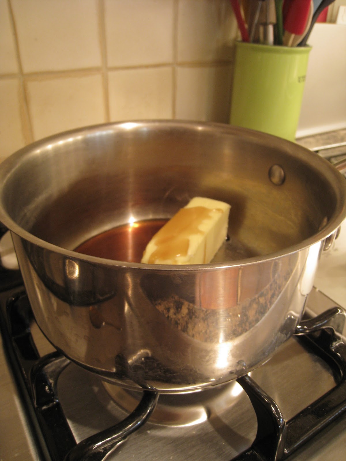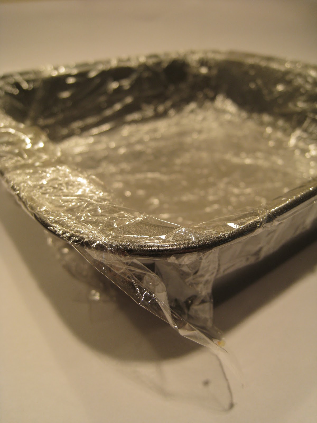 First things first, no need to preheat the oven! Just line a 1lb loaf tin, square cake pan or shallow dish with plastic wrap/cling film. Then melt the butter and syrup in saucepan over a low heat, stirring gently.