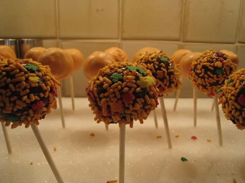 I posted last week about the nightmare that is .... the PTA Bake Sale. Bah! To be fair it's not just the Bake Sale... just about anything to do with the PTA is a minefield of potential social faux pas, especially as I'm new to it all! I'm hoping that by the time the Shouty One & Chubby Cheeks one are at school, I will have learned to say no (and to mean it) when faced by the Stepford Mothers and their clipboards! In the meantime, I will just suck it up, and attempt to beat them at their own game! Hence, Operation Cake Pop-a-licious was in full swing this weekend!