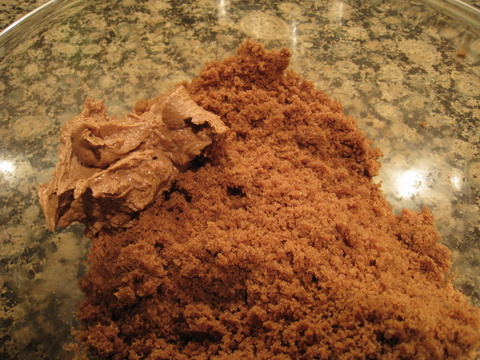 In a large bowl, crumble the cake with your hands into a fine even texture. Then adding a little bit at a time start to mix in the frosting, again with your hands. I can't tell you how much frosting to use as it depends on how moist/dry your cake is. The aim is to create a dough out of the cake crumbs, using the frosting to bind it together. For the three quarters of the Vegan cake I used, I needed about 3/4 of the buttercream quantity I made (see recipe above). As I've stated, you will get messy hands!
