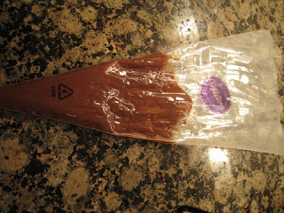 Place the cake pop stick back in the styrofoam and chill to set.