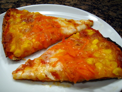 - Some orange colored pizza toppings, such as grated carrot and/or diced orange bell pepper.