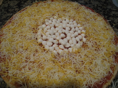 - Some yellow colored pizza toppings, such as sweetcorn and/or diced yellow bell pepper.