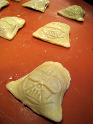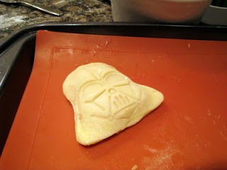 I chose to use the Darth Vader cutter from my selection as it had a nice simple outline. The cutters from Williams Sonoma are particularly good for this sort of thing as they have a spring-loaded stamp to create an impression in your cut out too, so you can see Darth's iconic features! I thought these would be particularly cool for Star Wars themed party food as they are small, easily managed finger foods that are lovely served cold as well as hot! However, the nice thing about this idea is that you can use whatever shaped cookie cutter you like, depending on your party theme or kids' preference! Dinosaurs, hearts, flowers, cars, even Christmas trees or other seasonal shapes! Your options are only as limited as your imagination and your cookie cutter selection allow!!!