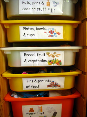 - Another invaluable storage solution is open drawer units. We have some from the Ikea Trofast range. The plastic drawers are easy to pull out and to see the contents of. They also come in a variety of sizes. We've made really good use of the smallest trays to organise all our dressing up accessories and play food... the annoying small bits that get lost in a large toy chest!