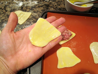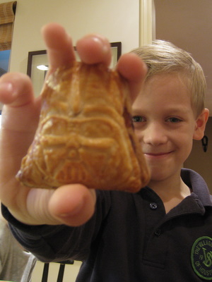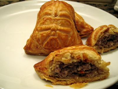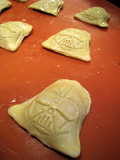 I've blogged before about my fabulous Star Wars cookie cutter set from Williams Sonoma, but there's only so many cookies a gal can eat... even if they are the yummy green cookies shaped like Yoda that I blogged about last month! So I was inspired to try using them for another, more savoury purpose when contemplating what to cook for the boys' dinner. I had planned to create a Sausage Plait with a sheet of ready roll shortcrust pastry, some pork sausage meat and some sage I had knocking about in the fridge, but decided to try creating Star Wars themed mini hand-pies instead. Or to a Brit like me, sausage rolls without the roll!