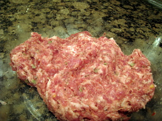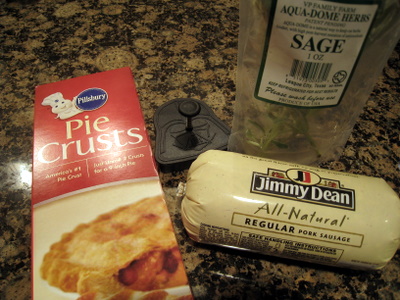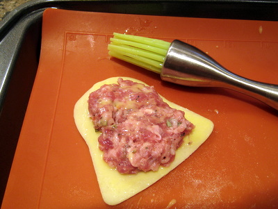 Firstly, preheat the oven to 400'F (200'C). Then you will need to prepare your filling. I like to add fresh sage to plain pork sausage. Finely chop the sage and then mix thoroughly into the sausagemeat... as mucky as it sounds, the easiest way to do this is with your hands.
