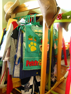 - A hanging rail for dressing up clothes is a great idea, especially if you can find one that's small enough for the kids to reach themselves! There are specific racks available for dressing up clothes that include a mirror and storage shelves for accessories too. We use a small wooden rail that is designed for use in a baby's nursery, but a coat rack pole or even wall mounted hooks could be used with equal efficiency.