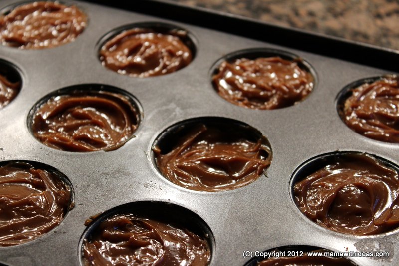 To make the filling, simply blend the cream cheese, egg, evaporated milk, sweetened condensed milk and vanilla with a hand mixer or blender until creamy and very well mixed. Add 2-3 tablespoons of the dulce de leche and blend again. Spoon the mixture into each cup to almost the top (leaving a small gap at the top for the topping).