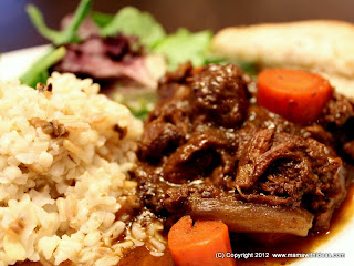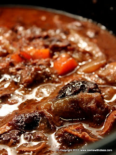 One of the most obvious themes running through the series is food... the indulgent & extravagant meals of the Capitol residents compared to the shocking lack of food in the districts and arenas. And the author Suzanne Collins does an amazing job of making the readers' mouths water with her descriptions of the former. I was particularly envious of the Lamb and dried plum stew that becomes Katniss' favourite, so much so that I was inspired to recreate this dish by adapting my own Lamb stew recipe. In my mind, I imagined it to have a middle eastern quality, hence the addition of warm aromatic spices such as cinnamon and sumac (worth trying to get hold of if possible, but can be substituted with the finely grated zest of half a lemon). A rich and hearty dish like this deserved long and slow cooking, so it was a perfect opportunity to get out my trusty slowcooker!