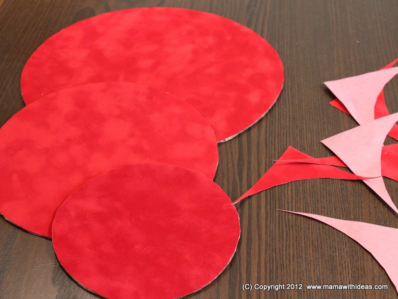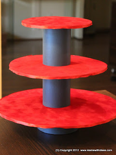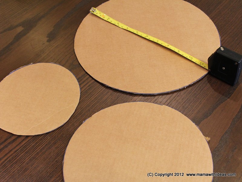 First of all, you need to cut 3 circles of card in ascending size. My largest circle was 12" in diameter and the second and third progressively smaller. I used a variety of plates to draw around to get the right shape.
