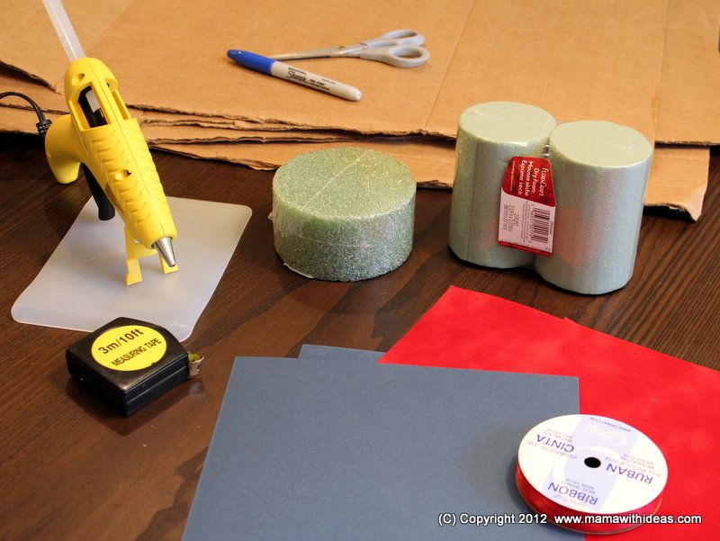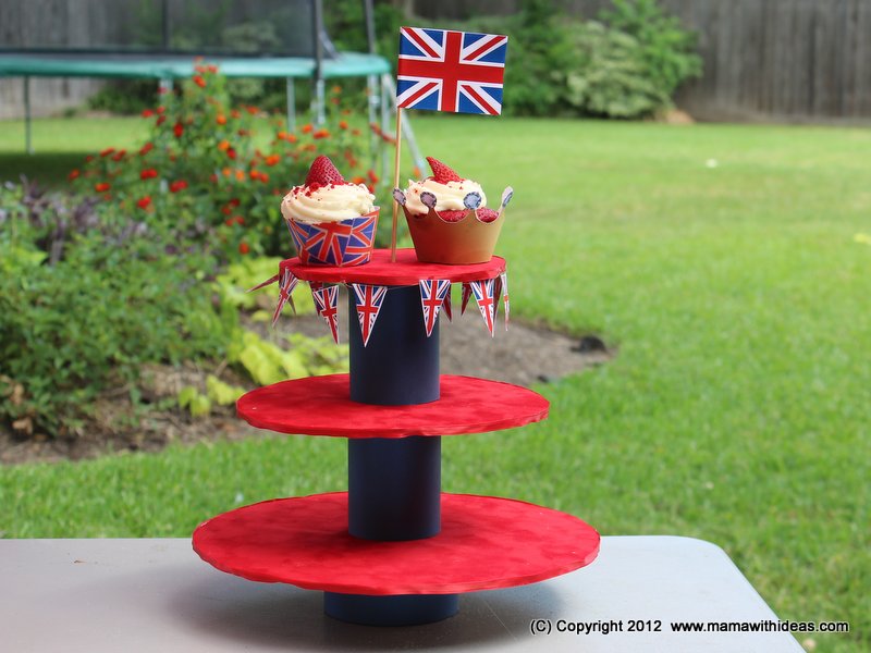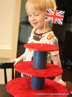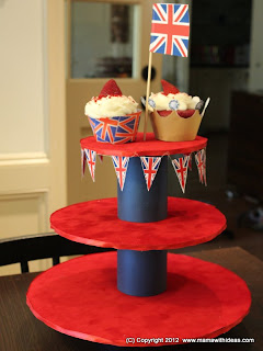 Earlier last week, I posted a few ideas to get your Diamond Jubilee street party planning on the way, including some themed cupcake wrapper printables. I decided to extend that idea further, and create an easy (and adaptable) cupcake stand to display these little beauties on! Cupcake stands are very popular at the moment, but are usually quite expensive for what they are! This one is made from carboard, paper and florists' foam (but you could easily use all recycled materials to keep costs even lower!). I kept mine relatively simple so as not to detract from the cupcakes themselves and also so that the cupcake stand can be easily adapted for another occasion!