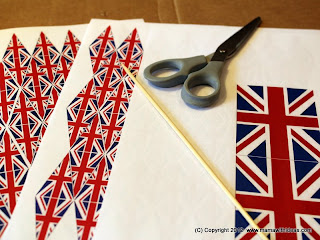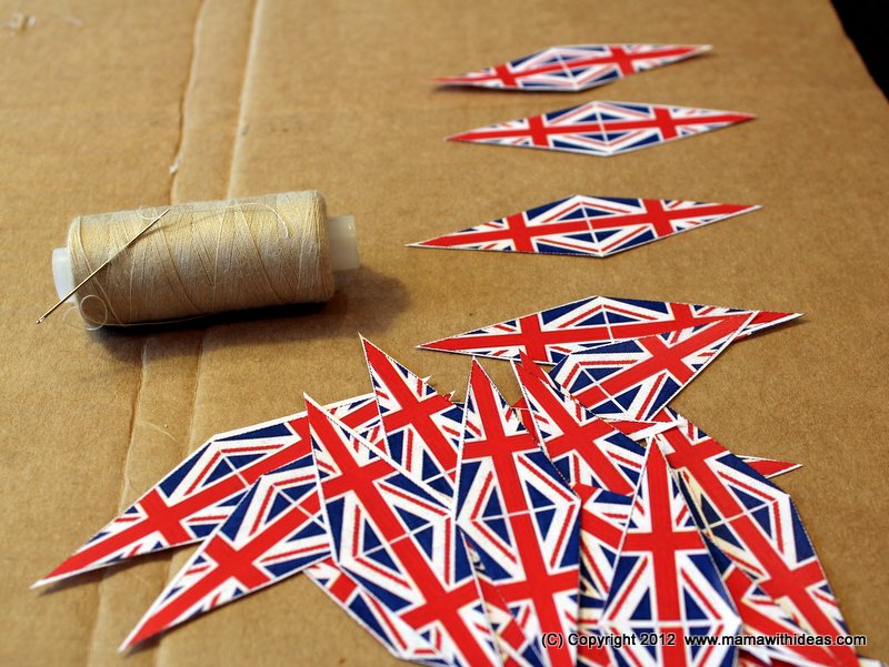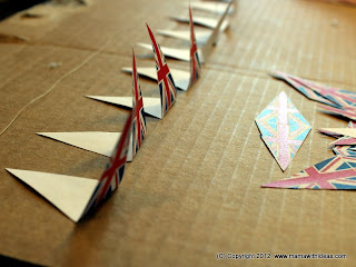 To make the bunting, cut out the diamond shaped double union jack pennants.