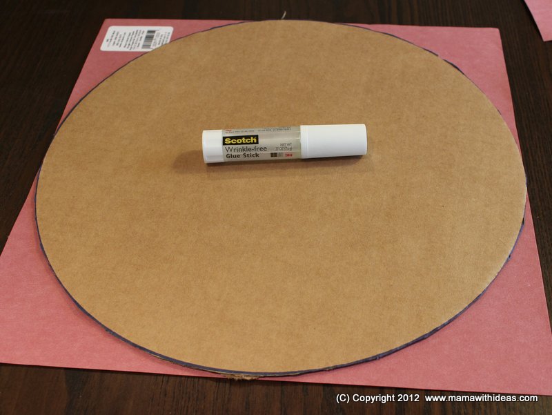 Glue the circle onto a sheet of colored or patterned paper - I used wrinkle-free gluestick to achieve a smooth surface. The paper I chose was a fabulous 'velvet' feel paper from a selection of scrapbooking papers in my local craft store ... I felt it was suitably regal for the occasion! :-)