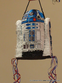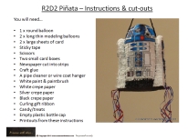 The Big One has been Star Wars mad since the tender age of 3 and a half when Him Indoors & I were exhausted with newborn twins and looking for a movie to occupy our eldest whilst we got a well-deserved sit down on the sofa! A quick flick through our DVD collection yielded 'Star Wars Episode IV: A New Hope'... and (as they say) the rest is history! A few short months later the obsession had progressed so much that the Big One asked for a Star Wars themed 4th birthday party! Pinatas were a relatively new arrival to the party scene in the UK so I decided to make my own. Surprisingly, they are very easy to make and you can even adapt them (as I did) to be more suitable for pre-schoolers with a pull-string to open them rather than the potentially dangerous blindfolded stick-busting more common with pinatas stateside! I was really pleased with the way my R2D2 pinata turned out and have been meaning to post about it for a while... however, as this is from the archives of my pre-blogging days I don't have photos to show you how I made it (sorry)! So, I have taken the time to draw instructions in a step-by-step guide which also includes the printable decorations I made for mine... if you scroll to the bottom of the post there is a link to a .pdf file that contains everything in one easy to print guide (please note that I am sharing this for personal use only)!