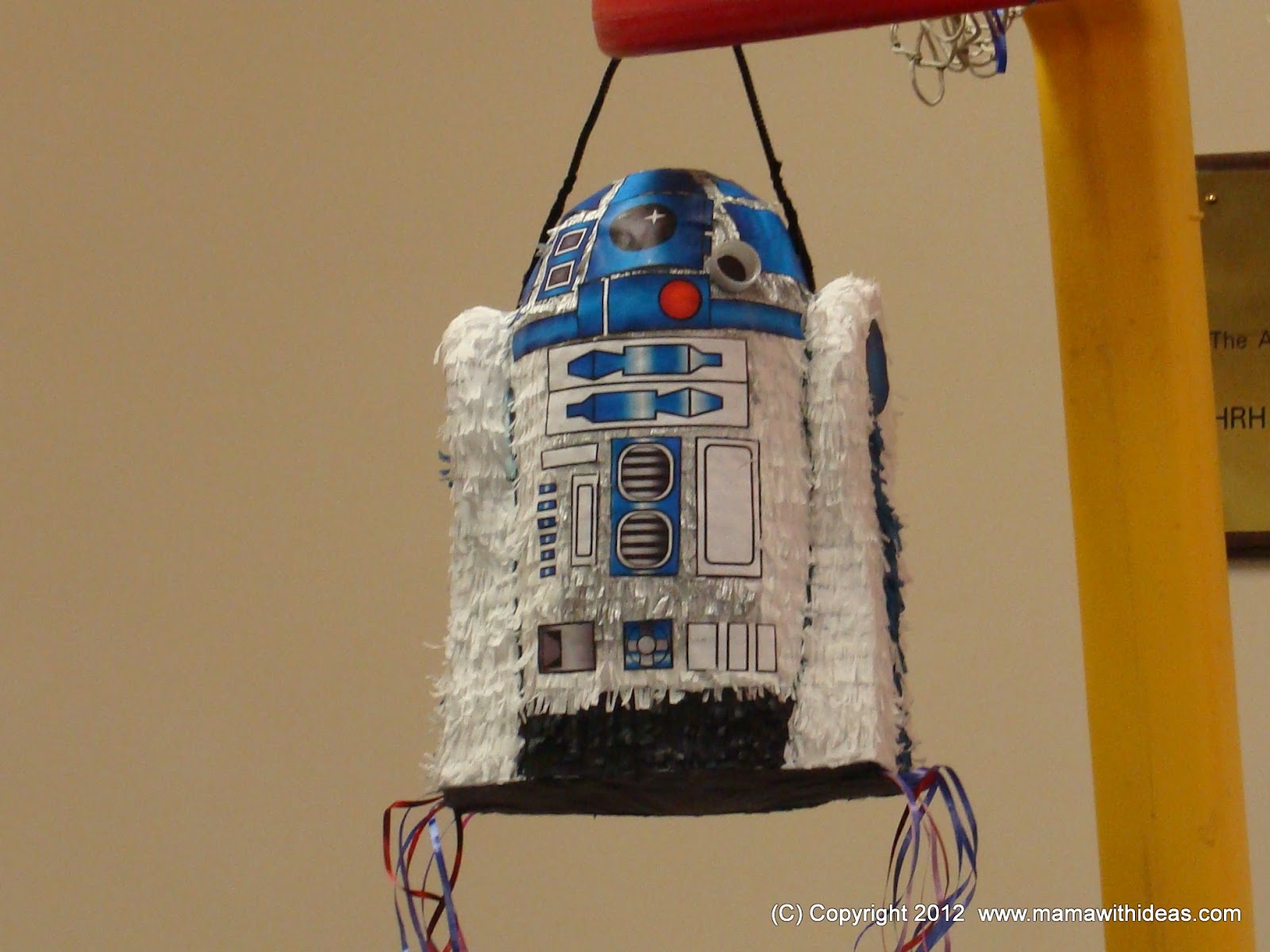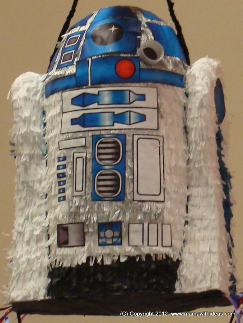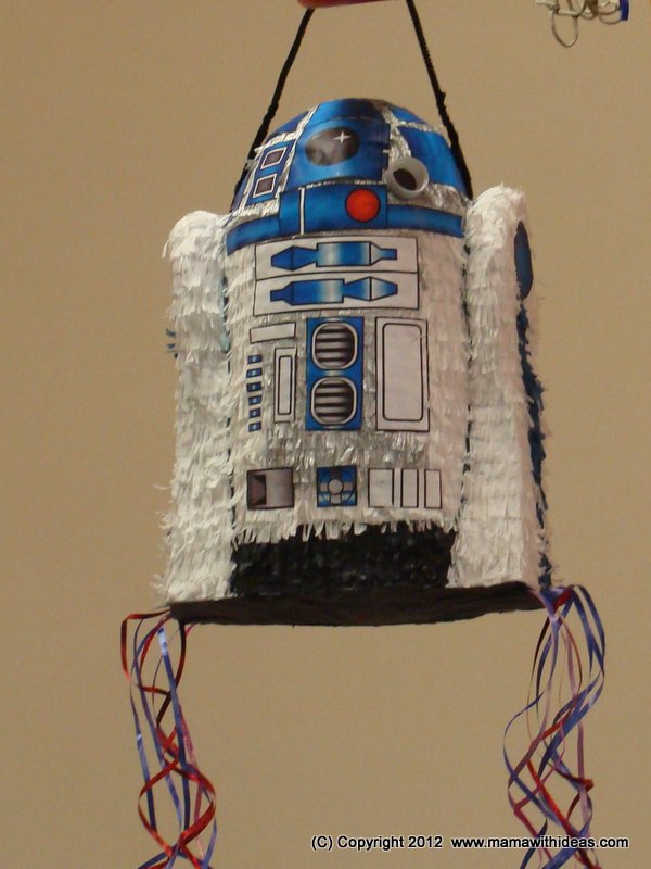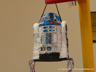 Step 14: Hang R2D2 by the hook on the top and then at the party, the kids can take turns to pull one of the strings until the lucky winner pulls the one attached to the trap door! If you would rather make this a traditional pinata that needs busting open with a stick, just don't bother cutting the trap door or attaching the ribbons to the base!
