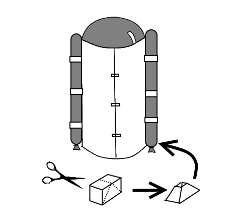 Step 3: Carefully squash the loop of balloons into R2D2 leg shapes and fix onto either side of the body with tape (you may have to use strips of paper taped to the body if the tape makes your balloons pop!).