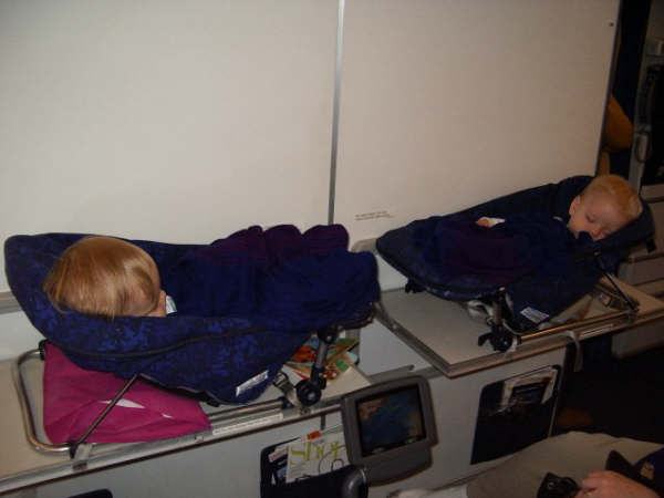 2. Booking your flights takes some thought, especially when it comes to selecting seats. If available, "Bulkhead" seats can work for some families. They face a wall rather than seats in front (so your little one can't annoy the person in front by kicking). They often have a little bit of space in the foot-wells where toddlers can sit to play. Some airlines even have 'bassinets' or 'reclining chairs' that can be attached to a fold down table in front of these seats. Ask about these on booking and confirm availability on check-in. These are only available for infants under the age of 2, and can't be used when the seat belt light is on. In my experience they are small and a bit cramped, especially if you have a bigger baby. Check for weight limits too. A downside of the bulkhead seats is that you are often required to stow all your hand luggage in the overhead compartments, rather than putting it under the seat in front. Some airlines won't allow you to reserve the bulkhead seats ahead of time (with the intention of reserving them for families). In these circumstances, book the next best seats you can and then ask for them at check-in.