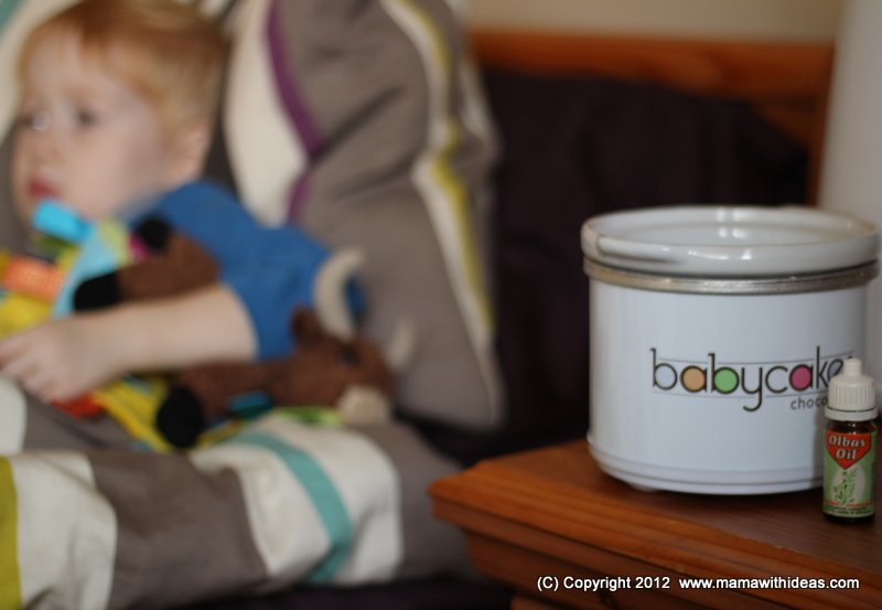 I used a few drops of Olbas Oil in the water in mine to further ease the little man's congestion, but Vicks Vapor product would work just as well.