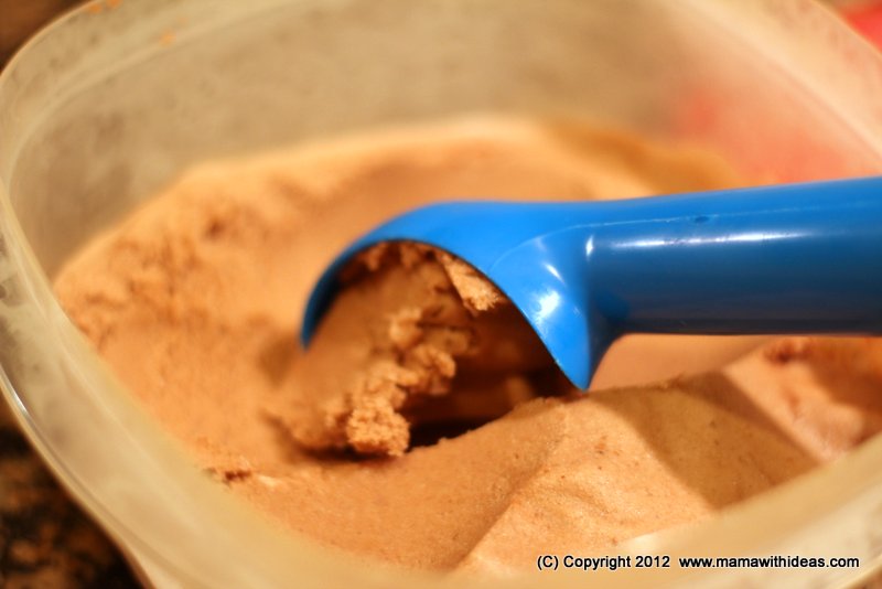 After a few hours (or overnight), the consistency will turn into an ice-cream-like consistency and you can use an ice cream scoop to serve. Perfect on it's own, or in a wafer cone with some chopped nuts & chocolate sprinkles for a special treat!